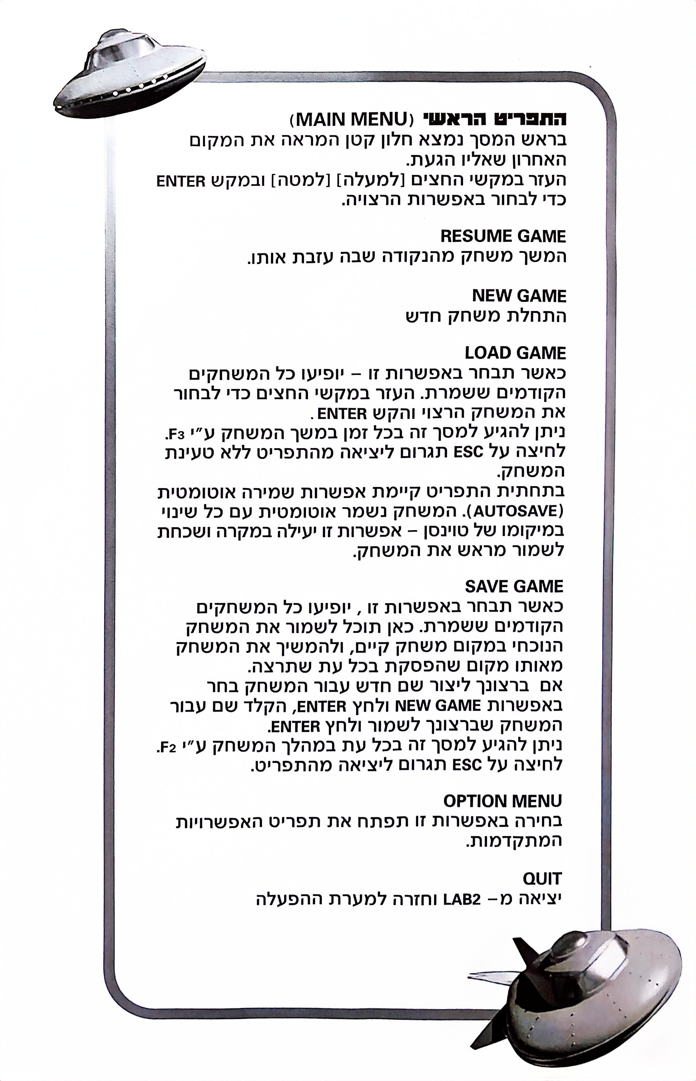 Main Menu