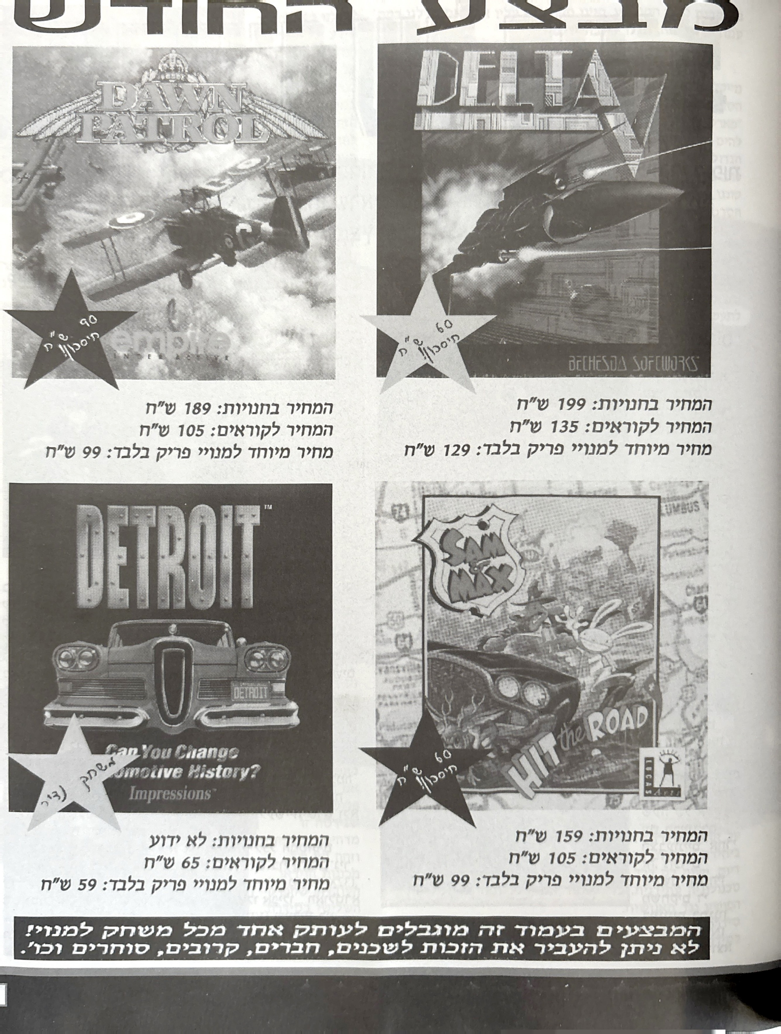 פעם ממש מזמן, כשהיינו קונים או מקבלים עיתונים של משחקי מחשב ישנים כמו Wiz או פריק וכו׳.. היינו רואים פרסומות למשחקים חדשים של מחשבת, הד-ארצי או מיראז׳ וכו׳.